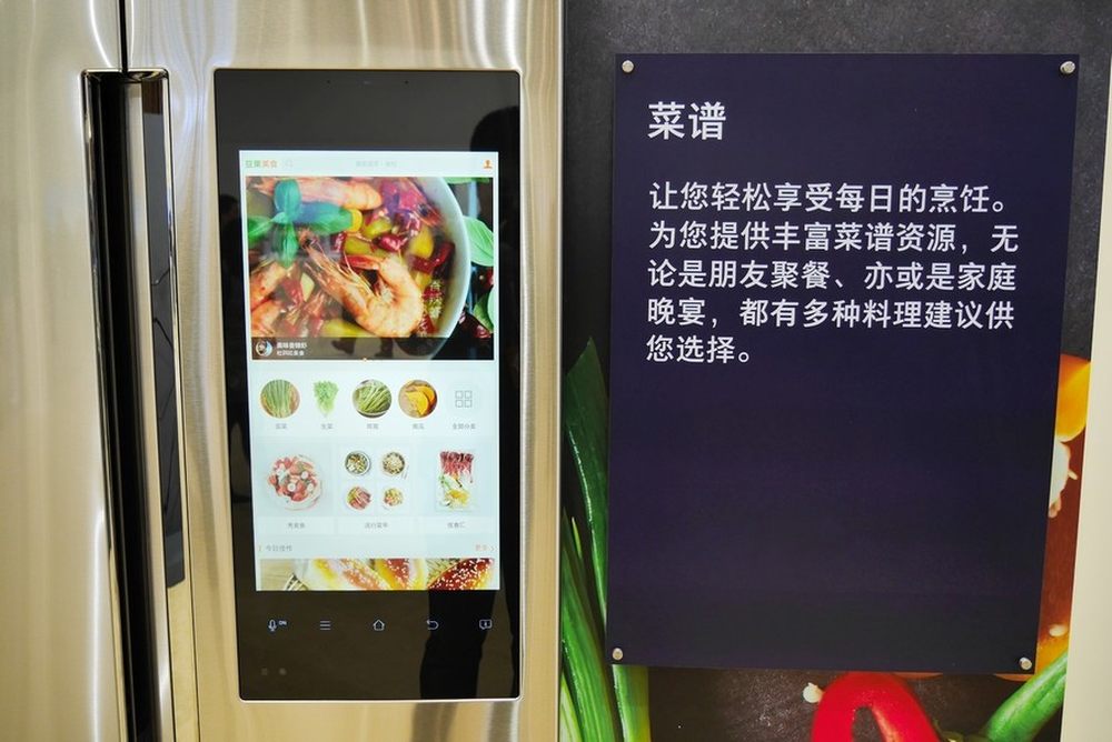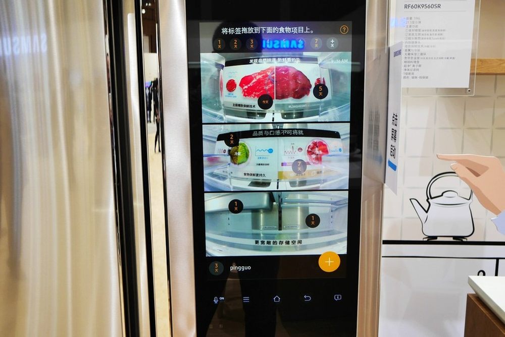 在现场体验中我们可以看到,其不仅可以通过备忘录、相册与家人进行交流,还可以通过超大触摸屏对冰箱内部的食物数量、保质期进行管理。3/10