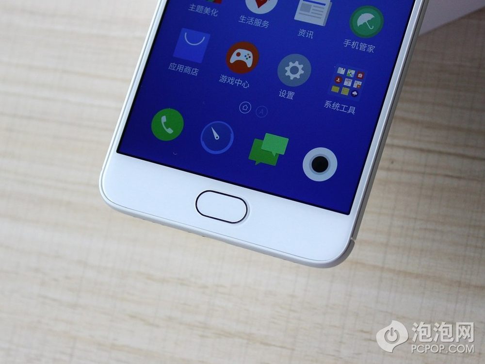 屏幕下方为魅族的mBack键,按键周围金色的包边显得很精致。这颗按键依旧支持点按返回,按下去回到主界面。9/17