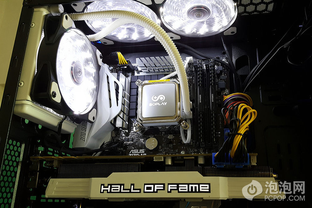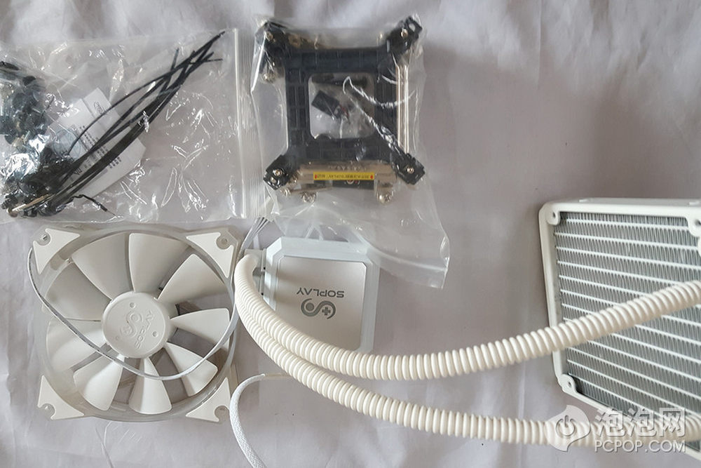 为了增强整体感,选择了一组SOPLAY幻灵白色CPU水冷组件加上一个白色的机箱风扇。9/19