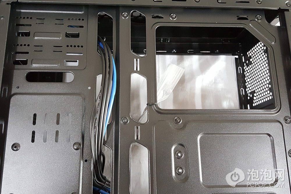 五金板相当厚实,穿线孔预留的位置恰到好处,背部走线完全没有压力。为了避免凌乱的线材显得杂乱,特地进行了束线处理。12/19