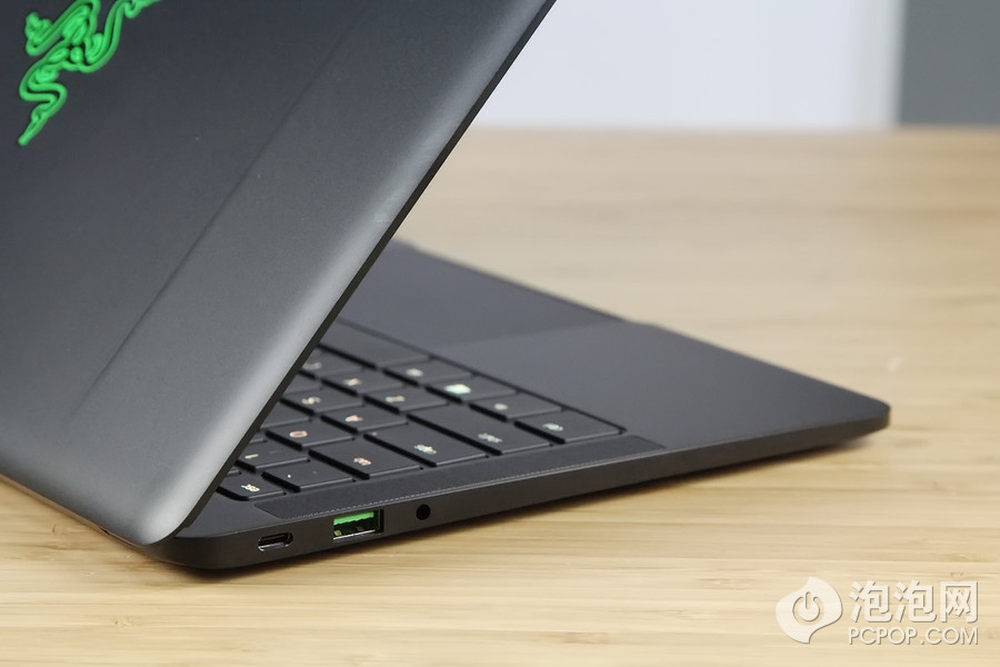 机身左侧配有一个雷电3接口,一个USB 3.0接口和一个耳机麦克风二合一接口,其中雷电3接口同时也是充电接口。-------------------------------------------------------------------------------------------------------------- 雷蛇天猫旗舰店:雷蛇灵刃潜行版 参考价格:¥8499