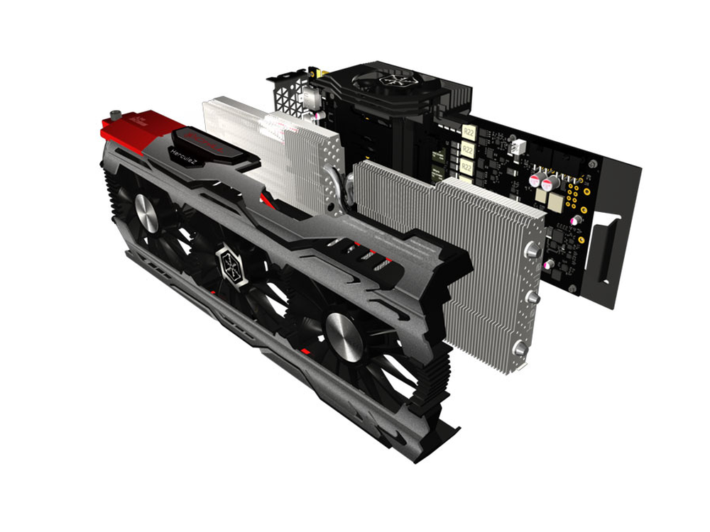 映众(Inno3D)GTX 1080冰龙超级版针对GPU部分,三风扇五热管是最有效的风冷方案!与传统的三风扇五热管不同,全新的HerculeZ X4 Air Boss对热管配置进行了升级,从5根6mm直径热管升级为2*8mm+3*6mm,进一步地提升了散热性能。8/19