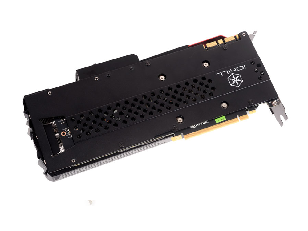 映众(Inno3D)GTX 1080冰龙超级版外观方面堪称这几代冰龙显卡的颜值担当,银灰色的流线型整体外观显得非常时尚大气,红色的Sli罩则是画龙点睛!5/19