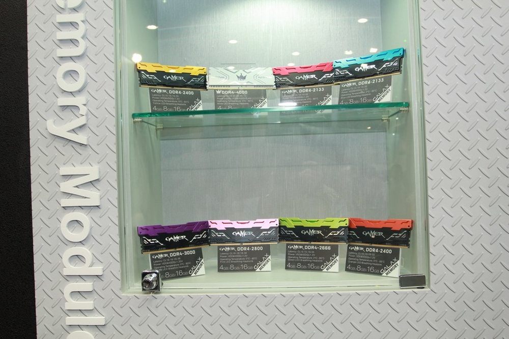 影驰展台展出的Gamer及名人堂DDR4内存,频率可以高达4000MHz。19/58