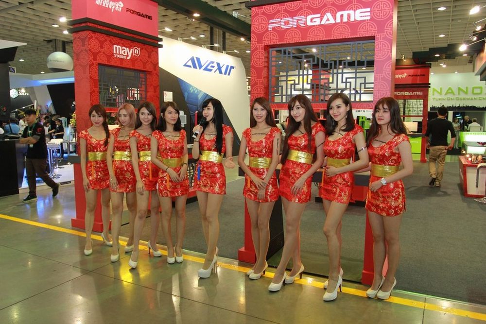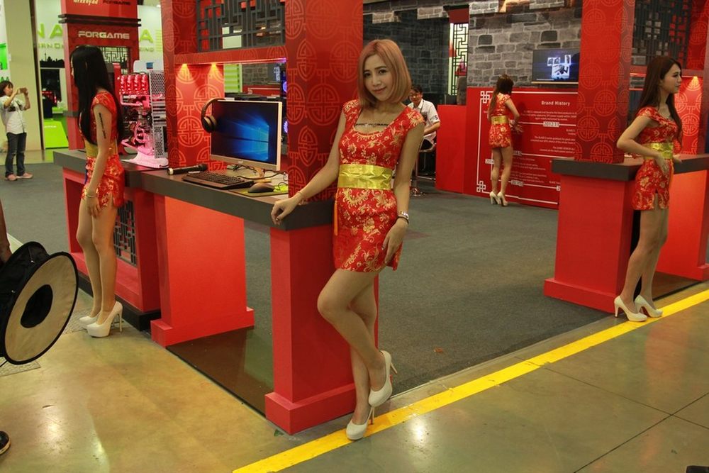 游戏悍将展台的ShowGirl穿着中国风的服装,相当阴人注目。8/58