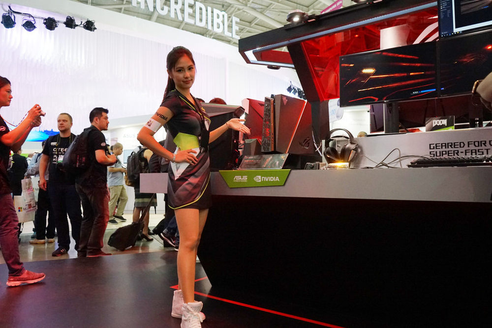 NVIDIA的姑娘到处跑,这里是华硕展台。6/99