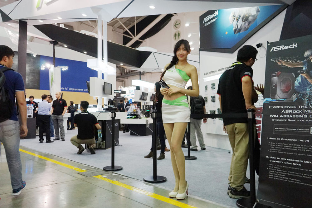 又到了轻松的看图说话时间了!COMPUTEX这种级别的会展,各厂家除了拿出了自己的镇店之宝,还请来了众多美女拉拢人气。喜大普奔的帖子没有政治倾向,没有商业陷阱,纯纯的长腿漂亮妹子和高科技压缩出的信仰级硬件只会让人心情愉快。不讲技术不讲业务的COMPUTEX是什么样?就是这样。2/99