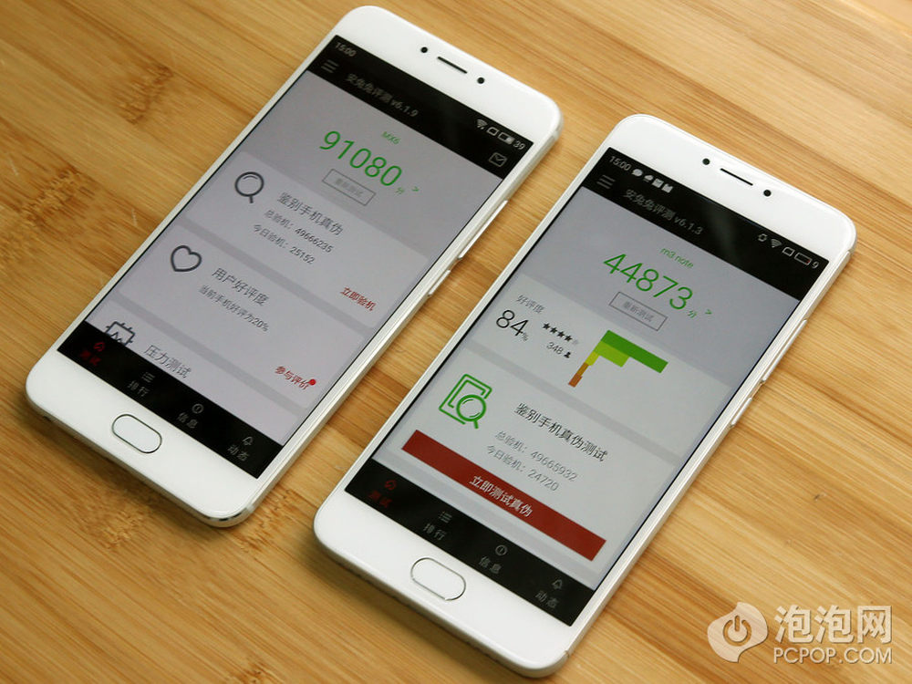 虽然正面差距不明显,但配置还是有很大差距,首先魅族MX6配备了10核的联发科X20处理器,而魅蓝Note3则配备联发科P10处理器,辅以更大的内存,MX6性能方面更加强劲。28/39