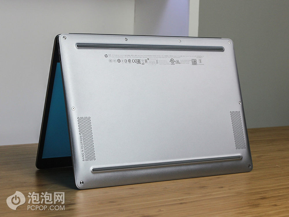 机身底部的设计也非常简约,在两个底角拥有两个长条形三角形阵列扬声器孔,整机音量足够大。同时,我们也可以看出该机并没有内置散热风扇,这要得益于其搭载的Intel Core M低功耗处理器。14/14