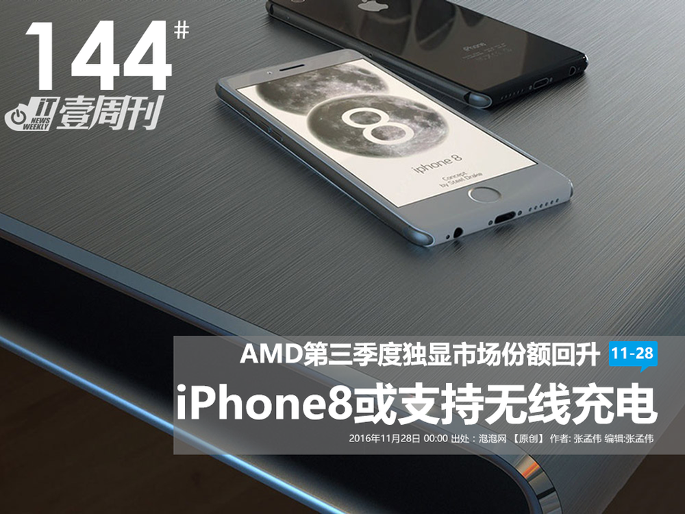 在过去的一周中科技圈可谓是传出了不少令人吃惊的消息,首当其中的就是《日经新闻》对传闻中iPhone 8将采用全玻璃外壳及无线充电技术的消息进行了确认,其次我们惊喜的发现在第三季度独立显卡市场调研报告中AMD的独立显卡市场份额已经提升到了30%%......了解更多内容,更多IT资讯,尽在本期壹周刊。2/11