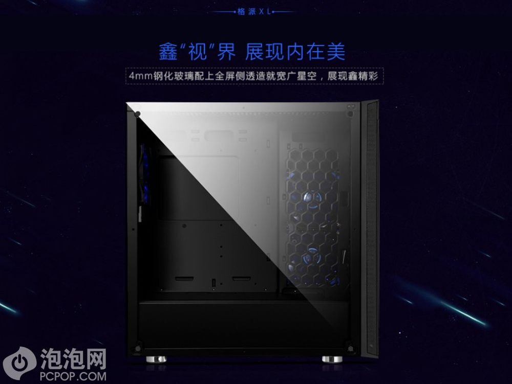 鑫谷格派XL机箱采用4mm厚的全屏钢化玻璃侧板,造就了其宽广星空的视觉效果,将鑫“视”界的内在美展现到了极致。5/22