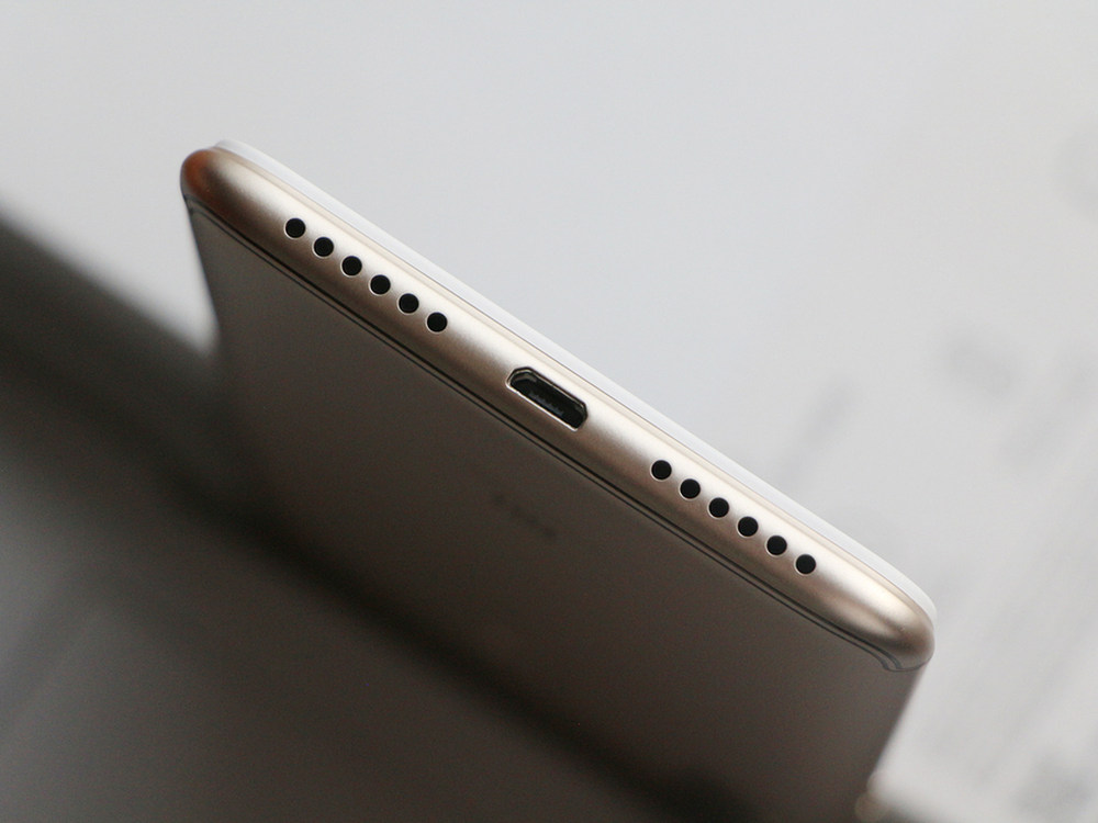 手机采用了Micro USB数据接口,并且保留了3.5mm耳机接口,放置在了机身上方,11/12