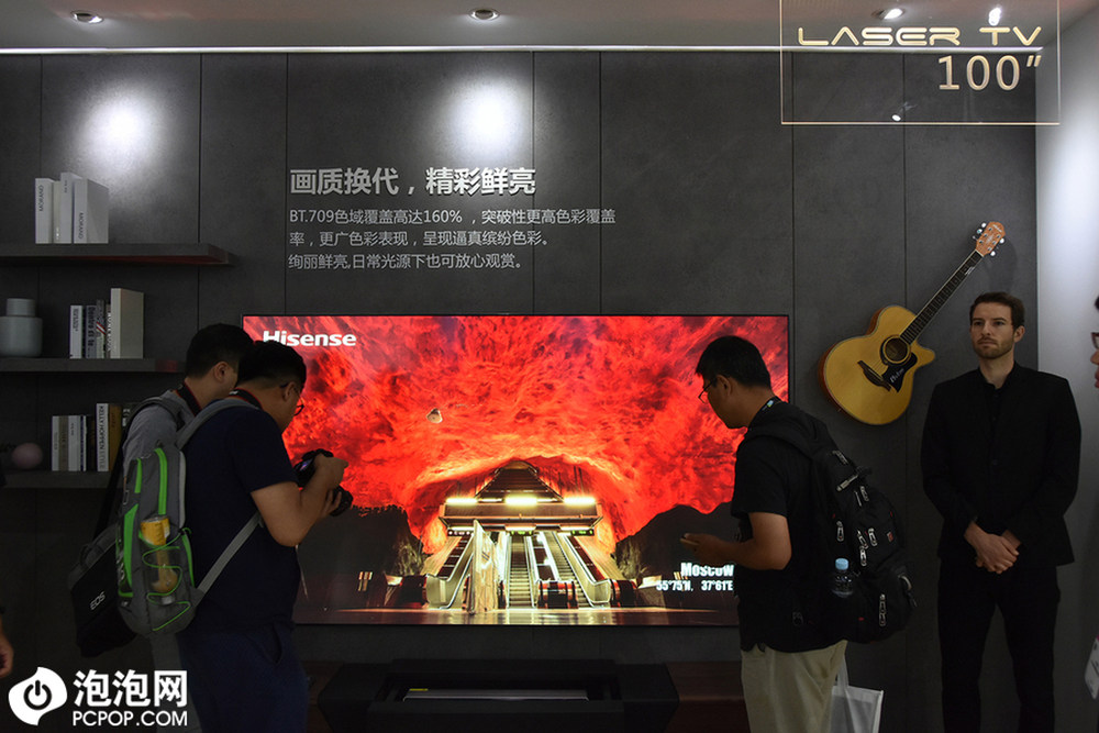 激光电视展区同样非常热闹,此次分别展示了L5、L6和L7系列,其中L5系列激光电视刚刚发布不久,它采用了全新DLP 4K显示芯片方案,DMD芯片面积减小,同时又使用了全新高集成度封装激光器,使得光源模组体积减小50%%,但发光效率提升10%%,配合与DNP合作、独家定制开发的高增益抗光硬幕,将发光效率和画质达到最优化,屏前亮度可以达到400尼特,抗环境光的能力得到增强。最为重要的是,定价19999元的L5大大降低了激光电视的购买门槛。8/10