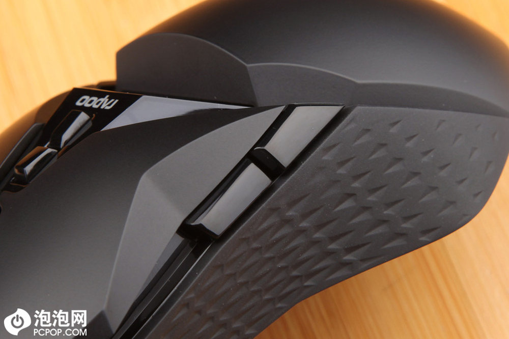 鼠标侧裙采用的是类肤材质,同时采用了3D浮雕不规则的纹理,在防滑的同时也给予了玩家优秀良好的触感,不过要注意的是这一材质比较容易沾灰,需要及时清理。7/12