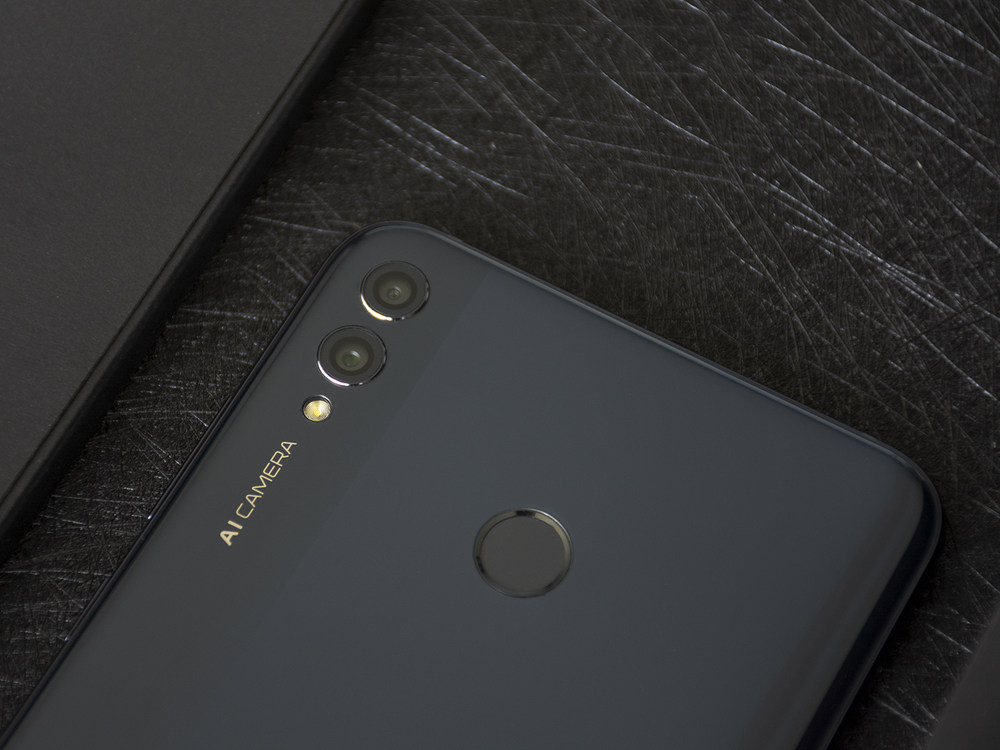 机身背面,荣耀8X Max采用了双纹理拼接设计,并且拥有后置指纹,横置时,机身背面像极了卡片机。5/12