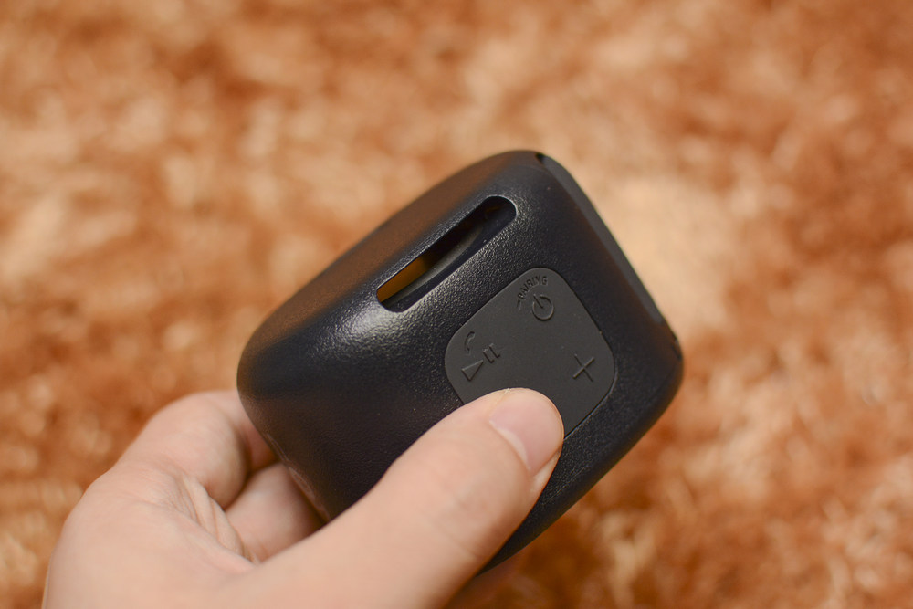 在索尼XB01音箱的顶部,分布有相应的功能按键,比如:开关机/播放、暂停、接电话/增减音量,因此用户使用手机听歌的过程中,可以直接通过音箱来实现通话。6/11
