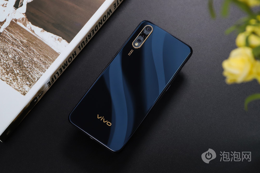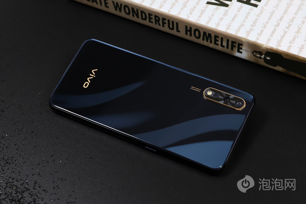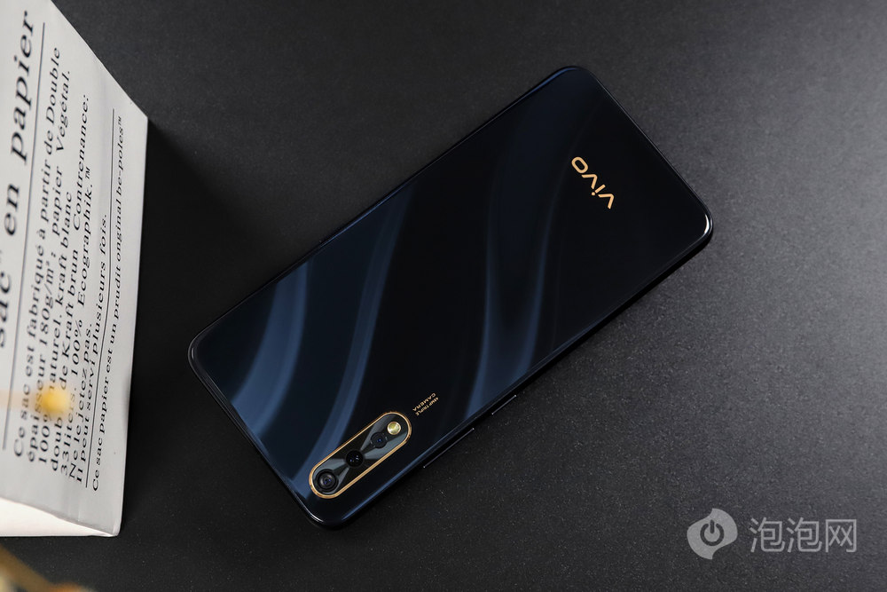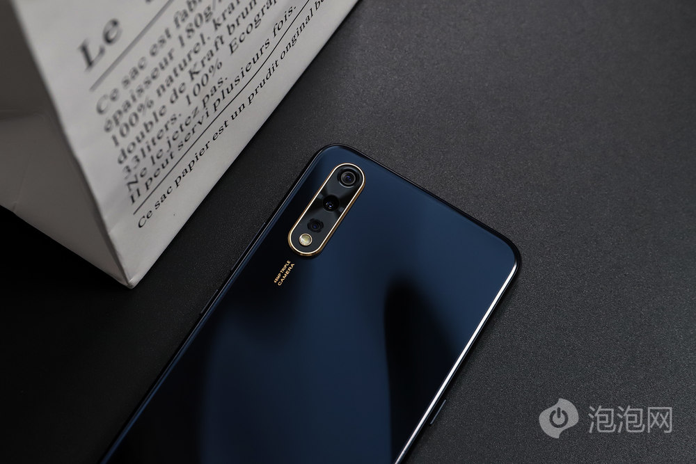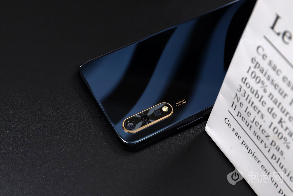 vivo Z5极速幻影配色背面的摄像头模组周围采用了一圈金色的装饰,并且Logo也为金色,整个背面看起来更具视觉冲击感。6/13