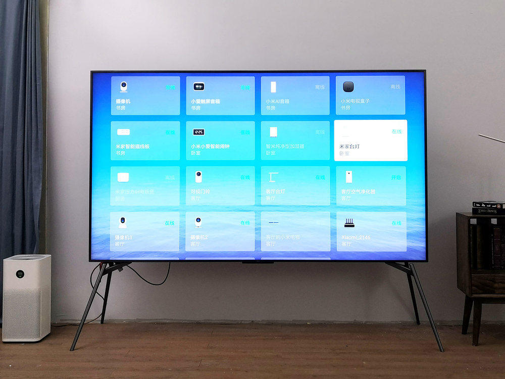 Redmi智能电视MAX 98''可以查看智能家电的状态,通过电视可以直接遥控家里的智能家电。9/12