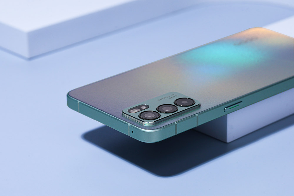 OPPO Reno6手机后盖梦幻的晶钻工艺。12/14