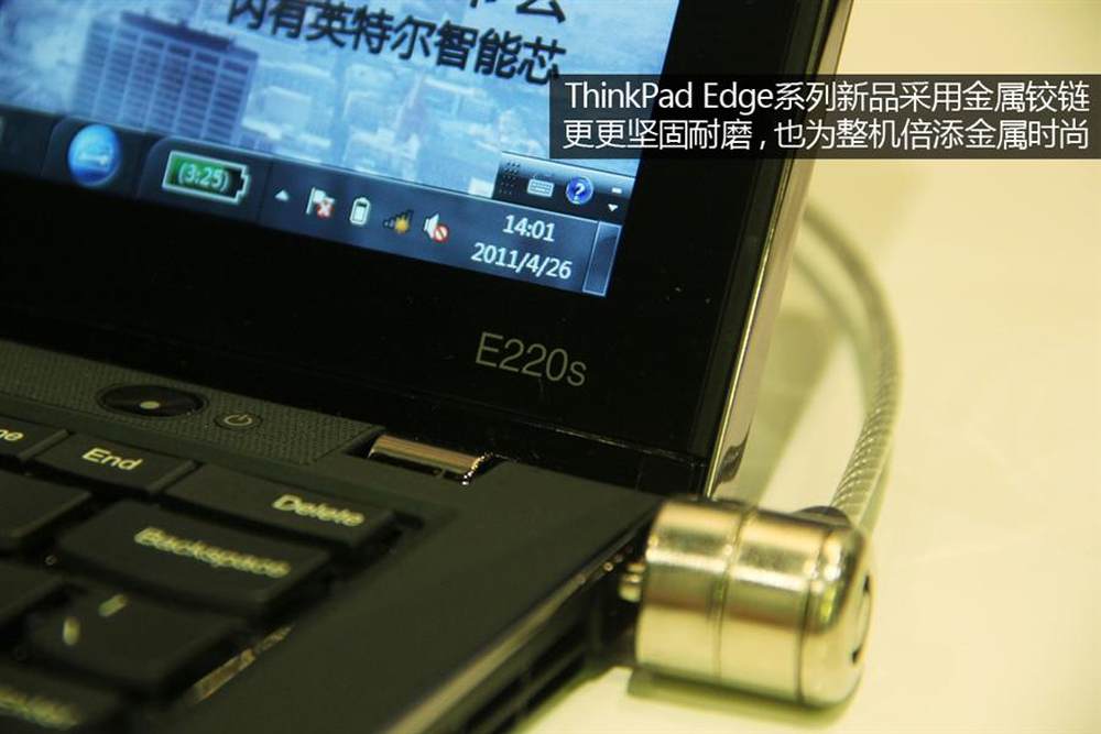 从整机硬件配置来看,此次展示的ThinkPad E220s精锐版商务本,搭载Intel Sandy Bridge平台酷睿i5处理器,标配4GB内存及320GB硬盘,同时集成于SNB中的核心显卡性能足可媲美上一代入门级独显性能。此外,可选的mSATA极速混合硬盘系统,在用户面对大容量数据的传输时格外的轻而易举。25/25