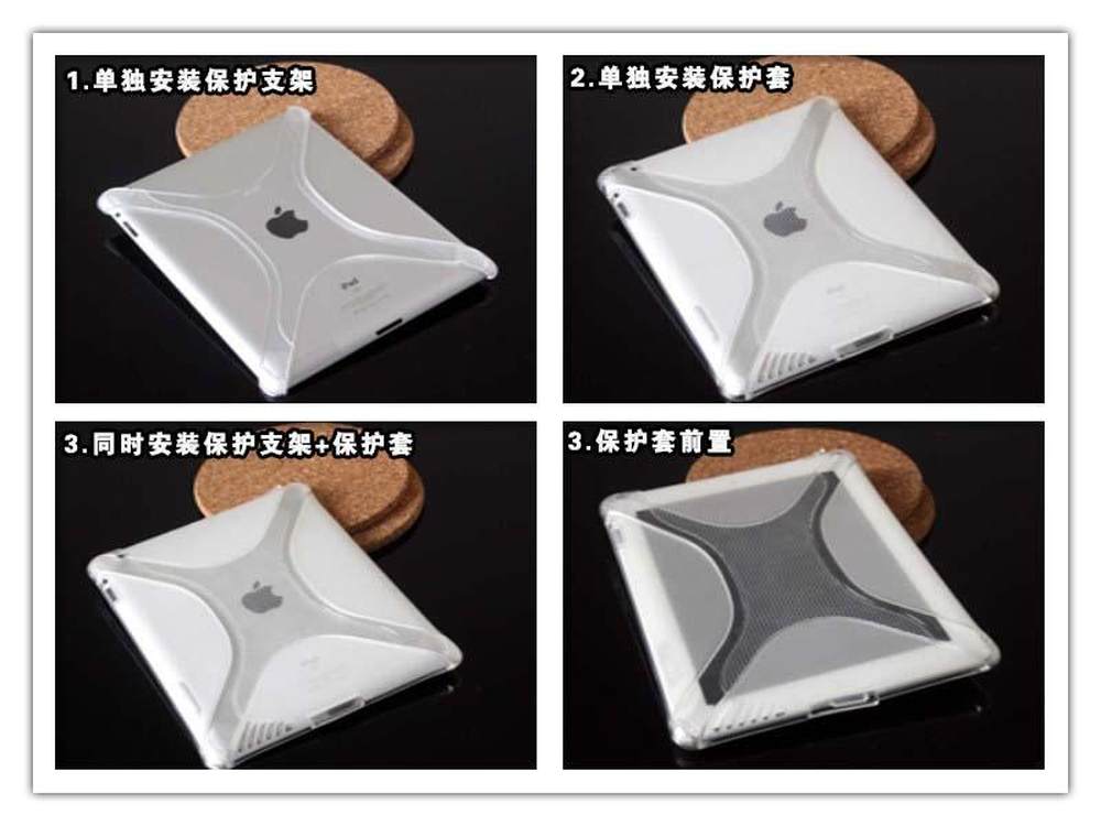 iPad自由落体的时候,97%%的可能是四个角其中以个最先着地,所以开发了单独保护四个角的这样一款保护支架,X型的结构可以迅速将一个角所受的冲击力分散到其它三个角。5/16