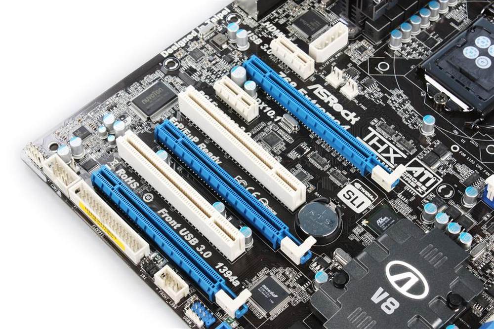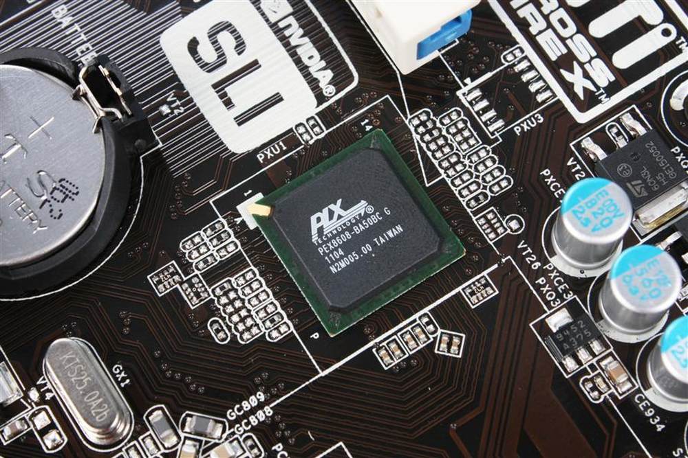 扩展插槽部分,主板提供3根PCI-E x16显卡插槽,支持CrossFire以及SLI多卡互联功能,此外还有2个PCI插槽以及2个PCI-E x1插槽。3/21