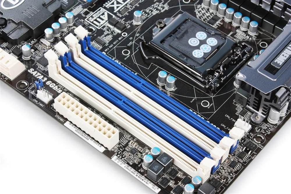 内存方面主板配备了4个DDR3内存插槽,不同通道以白、蓝两色区分,另外主板提供了由两颗电感搭配四颗MOSFET组成的独立供电系统为内存供电。4/21