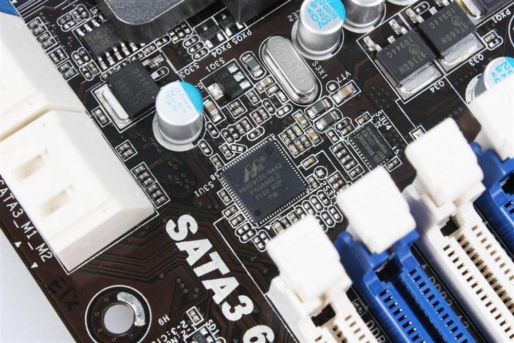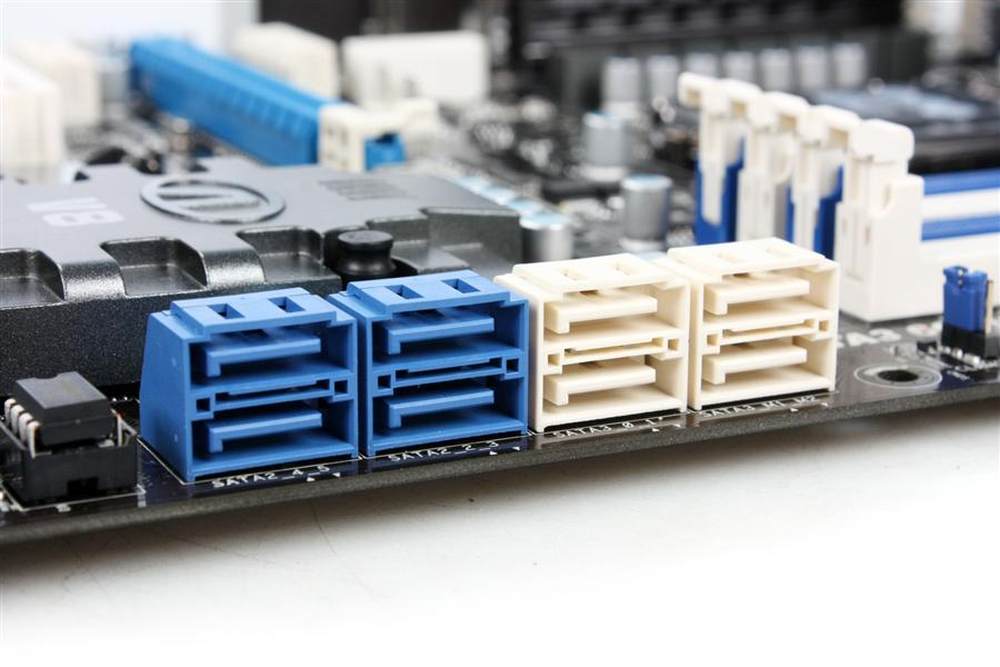 此外主板为用户提供了4个SATA 3Gb/s接口(蓝色)以及4个SATA 6Gb/s接口(白色),支持AHCI和Raid0/1/5/10等多种磁盘阵列模式,90度弯曲的磁盘接口防止和显卡发生冲突颇具人性化。。