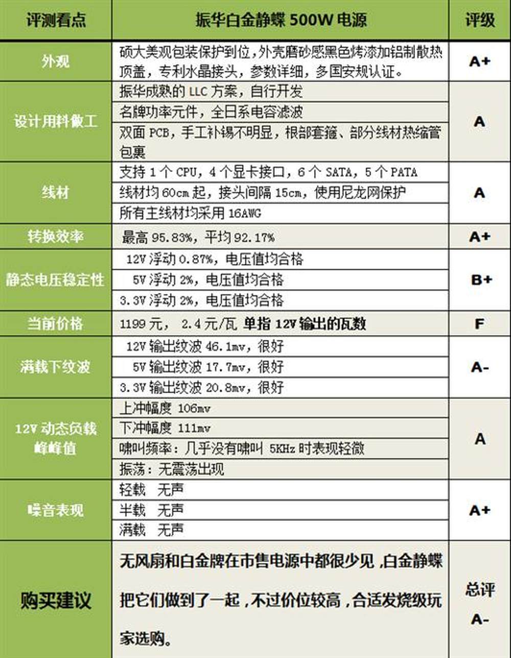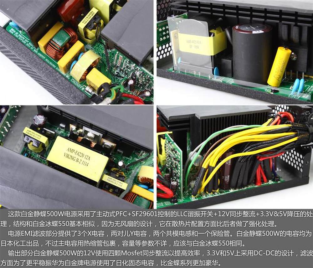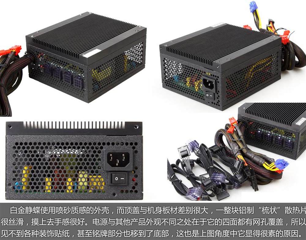 众所周知目前80PLUS最高认证为白金牌,尽管众多电源厂商已经发布了相应产品,但真正量产销售的目前只有振华做到了。目前我们在市场上可以买到三款白金牌电源,分别是对应550瓦和1000瓦的白金冰蝶以及500瓦无风扇的白金静蝶。2/10