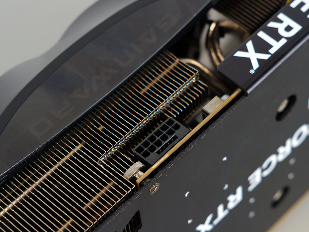 这款显卡比较厚,超过了3个插槽的厚度。6/9
