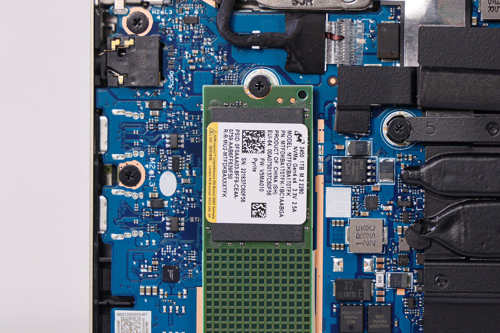 这款轻薄本内建一处M.2固态硬盘安装位。并且设计有散热片,能够助力固态硬盘稳定运行。21/25