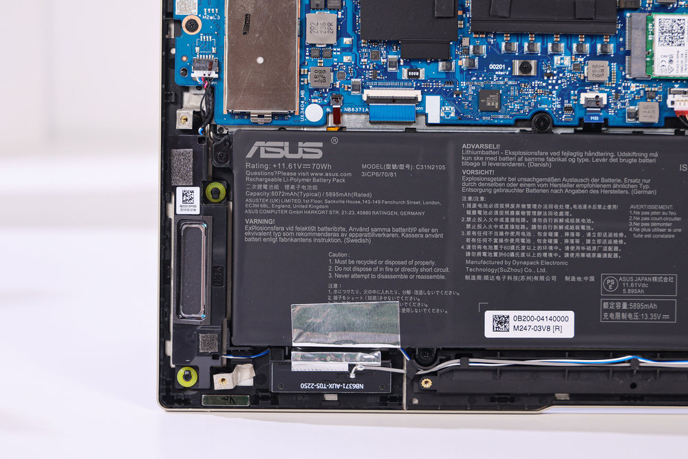 电池品牌为顺达电子科技,容量较大,为70Wh。24/25