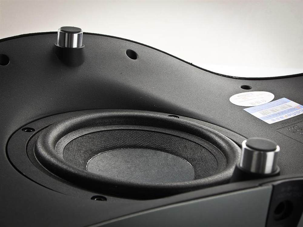 笔者初听M600,其音质惊艳。看似简单的箱体其实内置相当于2.1声道的结构:正面是两枚高音和两枚中音单元,底部则是一枚采用对地增压设计的低音单元。7/20