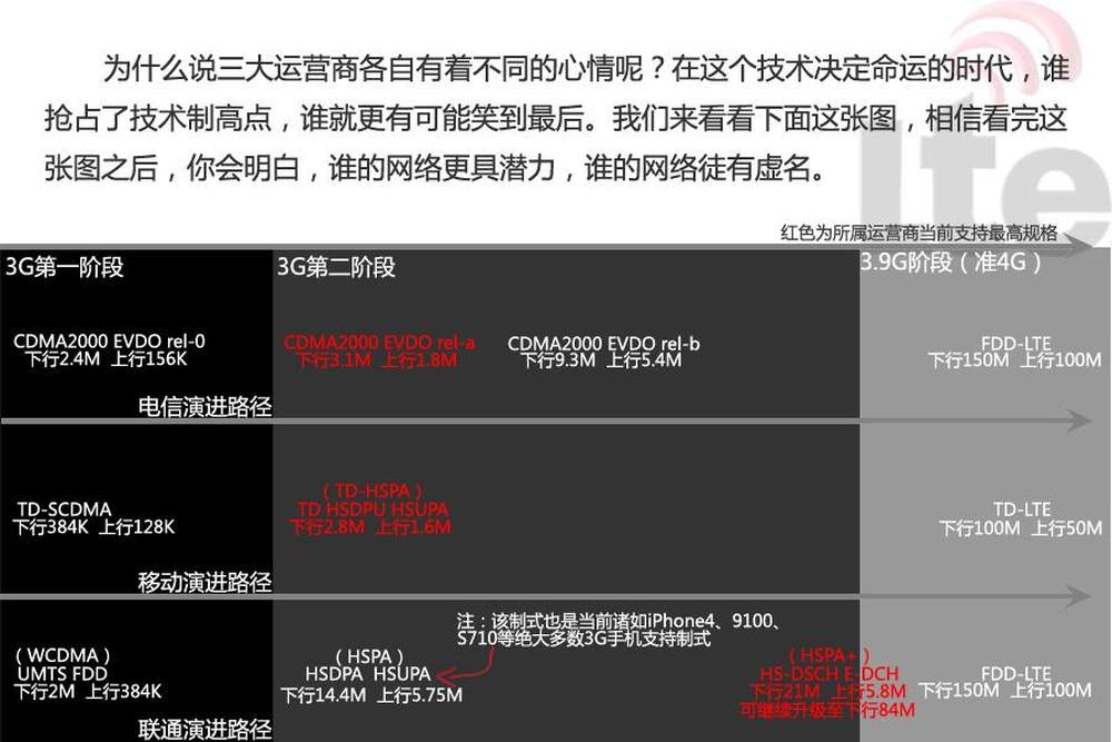 联通自信的认为,依托HSPA ,它可以在2015年前完胜移动。之后,再向LTE演进。4/11