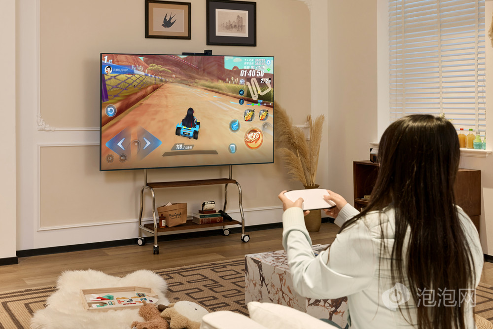 通过MateTV的灵犀悬浮触控板,用户可在巨幕上畅玩大型手机游戏。灵犀悬浮触控板革命性地实现了多指悬浮触控,如同将手机屏幕无限放大。8ms超低延迟让每次操作都“指哪打哪”,这不仅带来了前所未有的沉浸视觉与震感体验,更实现了从手机到大屏的“到家无缝切换”,让智慧屏真正成为家庭娱乐的核心。5/9