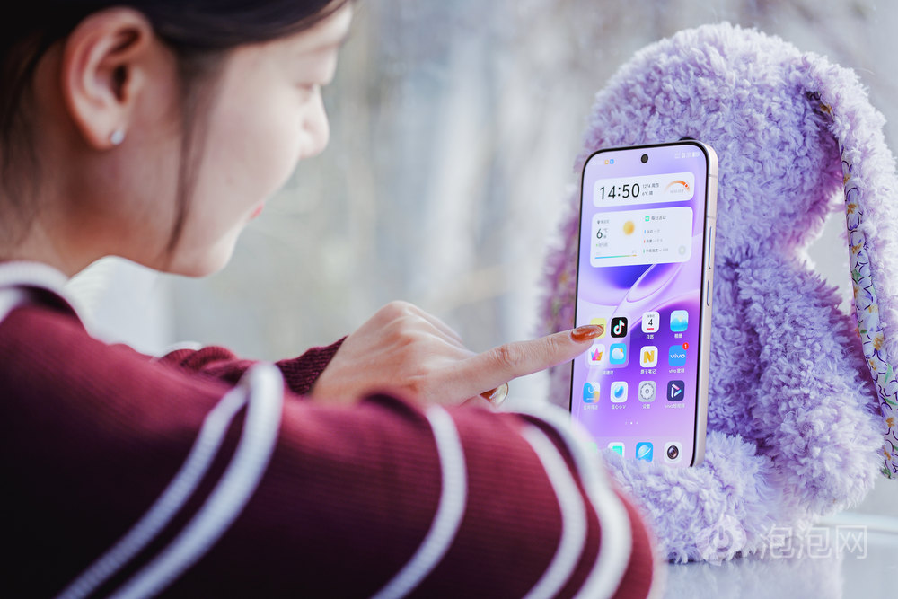 vivo S50这次不仅只有7.49mm的纤薄机身,并且重量也仅为196g轻盈,配合超大圆润R角,单手握持与操作都非常舒适;配合6.59英寸超窄黑边直屏,兼顾视觉沉浸感与使用舒适度。其中,灵感紫配色以浪漫治愈的色彩诠释心动美学,机身采用纱缎光刻工艺,背板触感丝滑温润,不易粘指纹,搭配航空级铝金属中框,经精密工艺打造,质感高级且握持舒适,不输高端旗舰。2/15