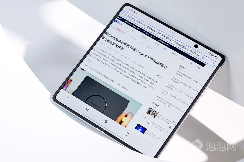 荣耀Magic V6已经正式官宣,折叠状态下厚度仅8.75mm,展开也只有4mm,是目前行业最薄的折叠屏手机。图中的雪域白配色整机仅219g,比许多直板旗舰更轻盈,单手操控轻松无压力。2/20