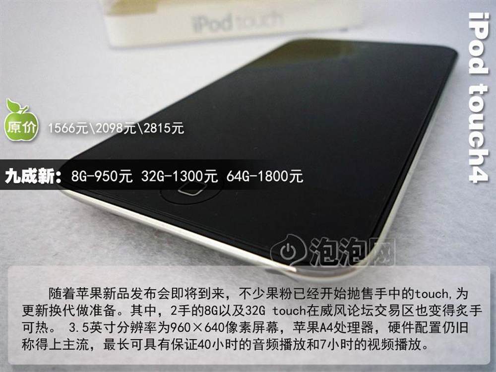 泡泡网MP3频道8月15日 苹果九月份新品发布在即,狂热的果粉已经开始抛售手中iPod,为迎接新款的到来开始储存现金。在苹果论坛的交易区里,touch的2手价格与原价相比有不错的性价比,十分火热。