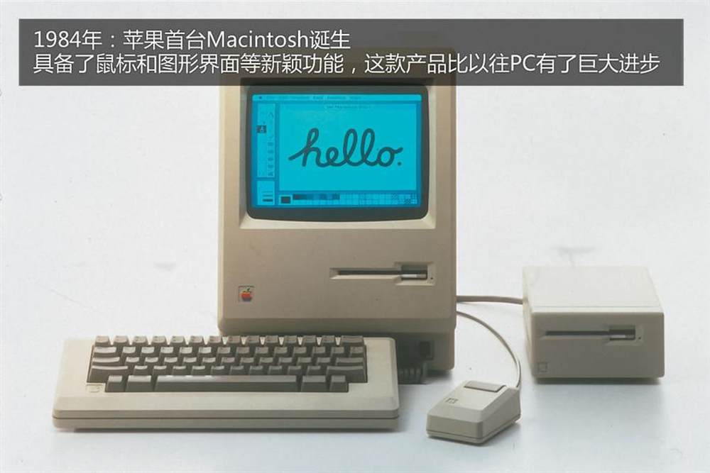 首款Macintosh是在“超级碗”橄榄球赛期间推出的,并且发布了一些很著名的广告。这款售价2500美元的产品采用了8MHz处理器、一个软驱、两个串口和1个9英寸的黑白显示器。5/11