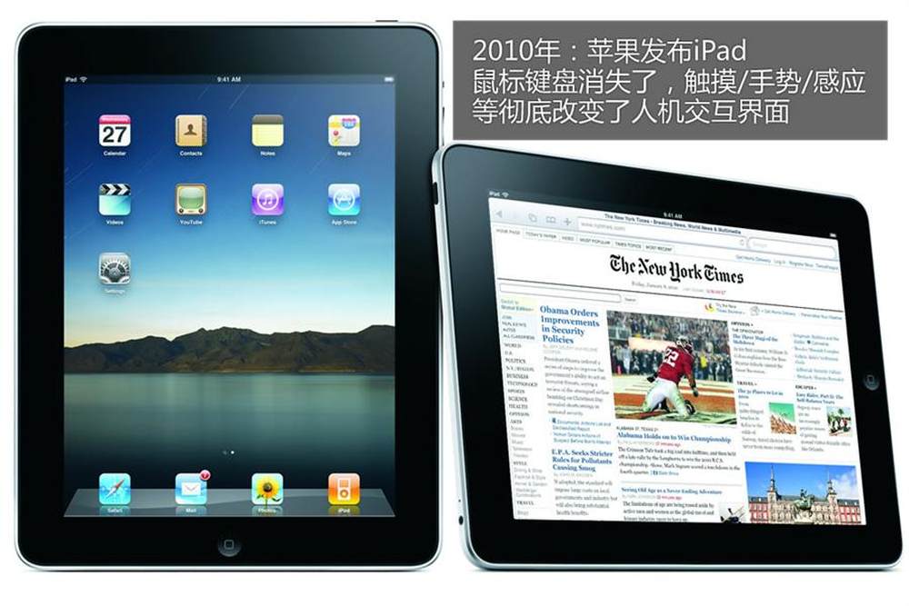 乔布斯2010年推出的iPad已经彻底改变了电脑行业,尤其是人机互动方式。鼠标消失了,键盘也没人用了。对于采用电容触摸屏的设备而言,只需要通过滑动和点击即可实现各种操作,这种体验主宰了移动计算市场。