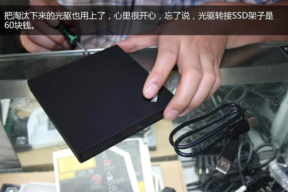 网上有很多笔记本装双硬盘的方法,但是硬盘一多功耗明显增加,换SSD后着迷于它超高的性能和超低的功耗,最厉害的是不怕震动了。于是心生邪念,一个笔记本装2个SSD2/19