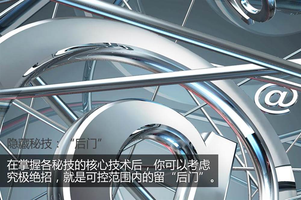 在懂得了各种笔记本把妹核心技术之后,便可以考虑使用这项隐藏技能。“后门”也就是所谓的“留一手”是各项技能连续施放,增加与妹妹净接触时间的上佳选择。(例如:为了下次的见面,在拆机后选择性精确控制故障的再次发生。)技术男应该努力做到与妹妹的关系在使用这项技能不断接触的过程中迅速升温。隐藏技能的施放需要技术男有较强的综合运用能力和深厚的积淀,要求能够在可控范围内保证“后门”的顺利建立、发展、发生和嵌套,是一项考验技术男德、智、体、美、劳全方位素质的综合技术。