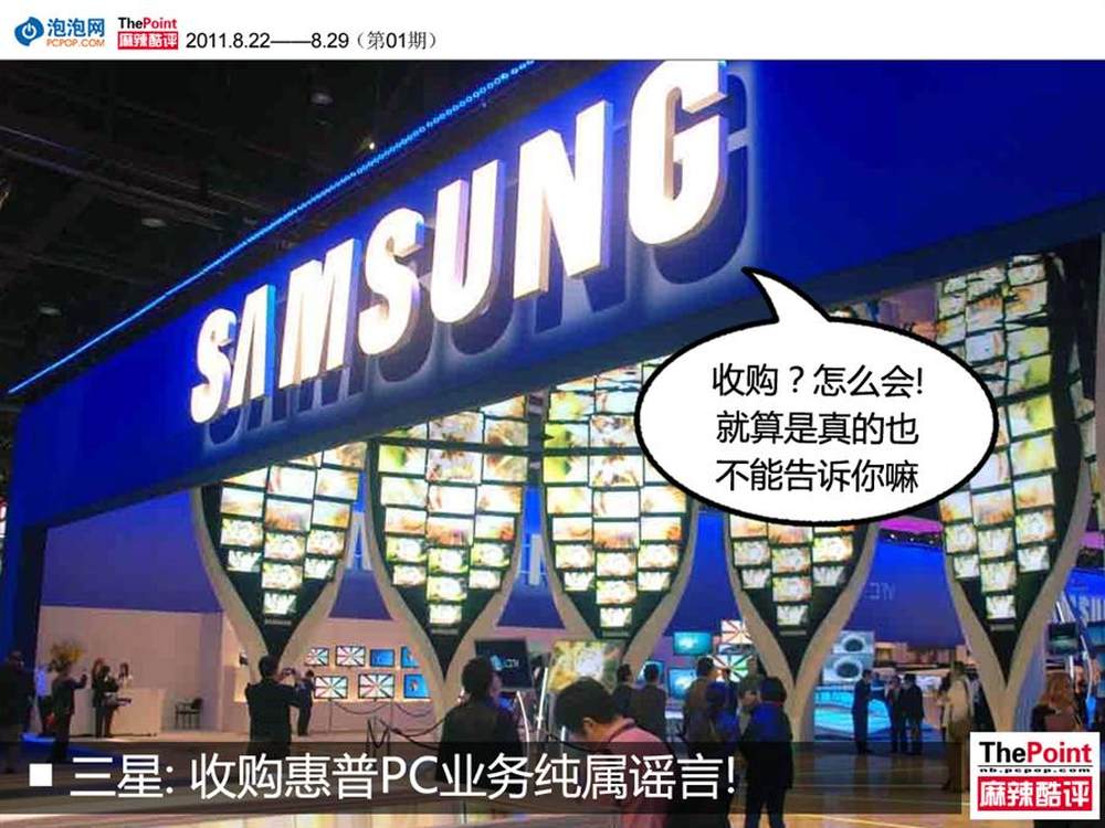 据国外媒体报道,此前曾有来自上游零部件供应商的消息显示,三星将拿下惠普PC业务线。对此三星公司近日发布声明表示,该谣言失实,与事实不符。 据了解,惠普公司近日发表声明表示,考虑分拆旗下PC业务线,韩国三星以及中国联想等PC企业均被视为最有可能的买家。此外,甲骨文也被传对其虎视眈眈,伺机将惠普收购。5/8
