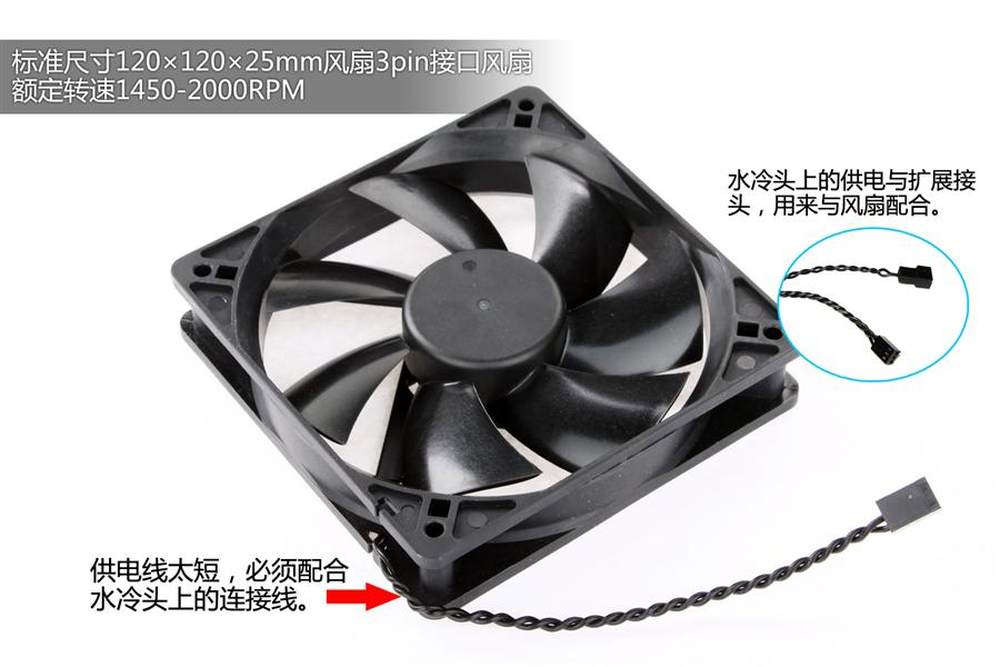 风扇没有太多标识,不过从测试情况看还不错,风力够用噪音不大。唯一不足的是接线太短,只能配合水冷头延伸出来的接头使用,如果把它作为单独的机箱风扇就需要延长线,不太方便。11/18