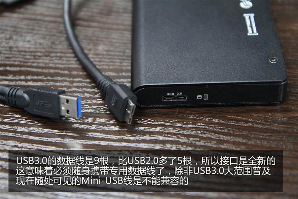 现在大多数USB3.0移动硬盘都用的是这种扁平数据接口,等USB3.0彻底普及之后,大家的数据线应该就可以通用了,就跟现在满世界都是Mini-USB数据线一样。不过很多手机用的Micro-USB也是可以兼容,就怕有些线质量不过关供电不足,带不动移动硬盘。11/15