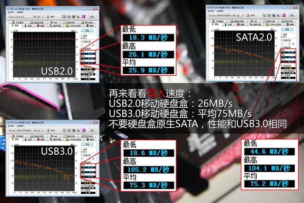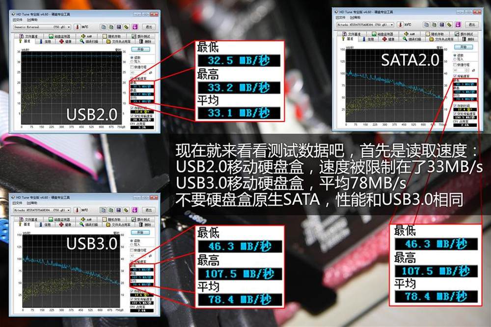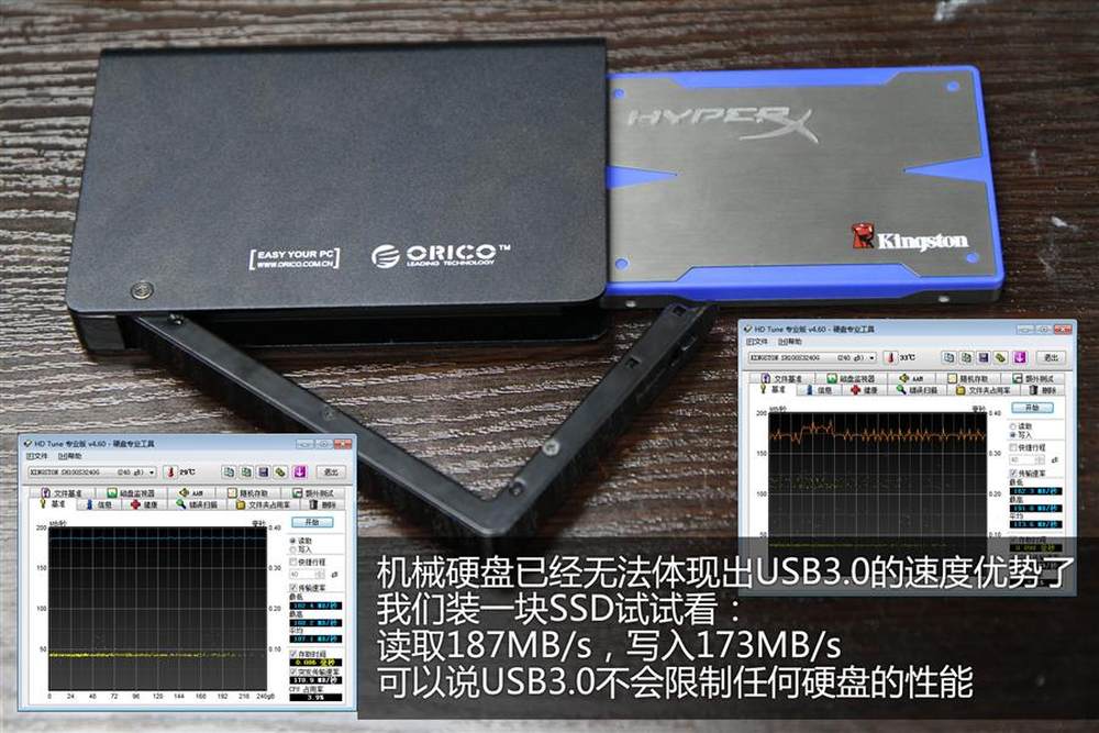 由于USB3.0的带宽和SATA3.0是差不多的,所以理论上USB3.0不会限制任何SATA接口硬盘的性能,即便是目前最快的SSD也能达到全速!14/15