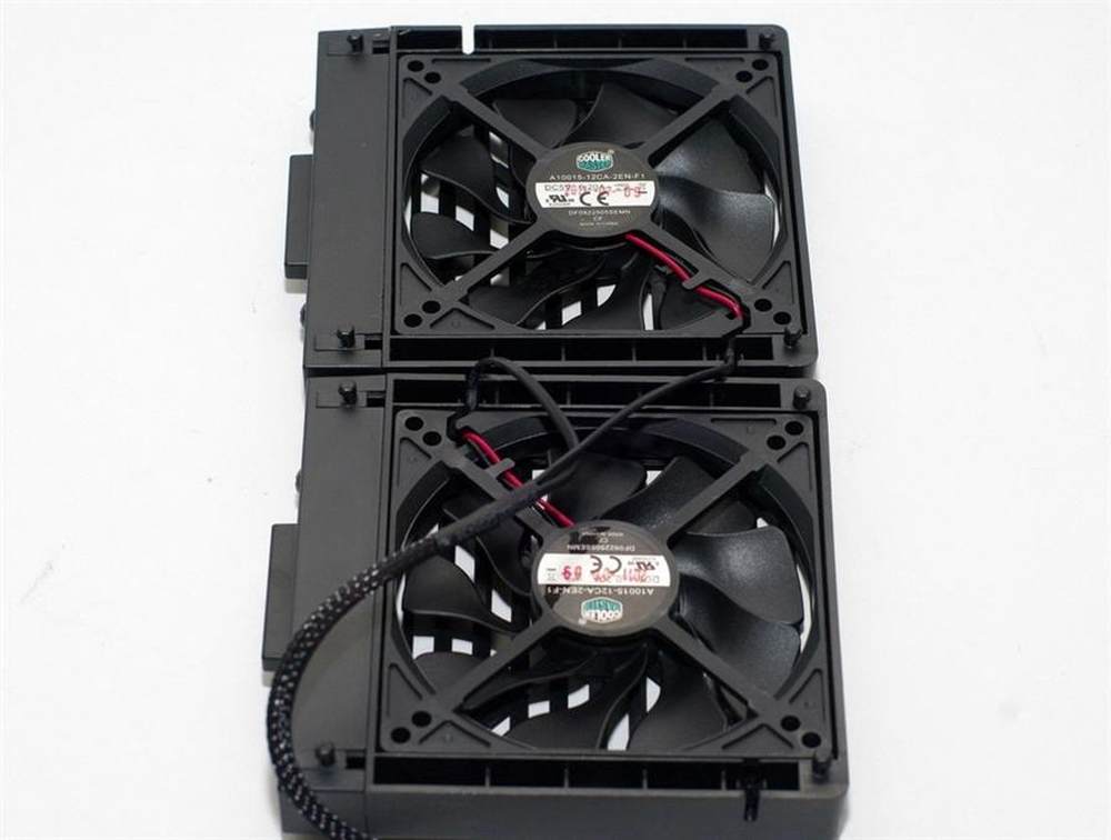 两颗风扇是相同的,安装在固定罩内,尺寸均为100×100×15mm,规格一样,可以随即固定在底座任意位置上,针对不同笔记本电脑。与大风扇不同的是这种模式并不是大范围覆盖,而是针对某两点散热,达到事半功倍的效果。10/17