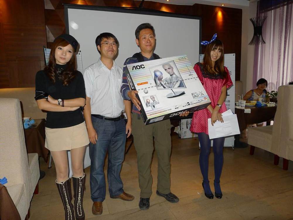 泡泡网论坛的一位幸运网友获得了当天的大奖AOC i2353Ph液晶一台,价值1899元,不得不佩服永远有幸运的网友啊!羡慕中……图为获奖者和美女模特、AOC产品经理罗智辉的合影。14/14