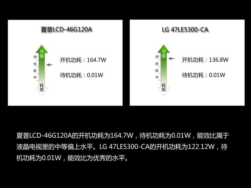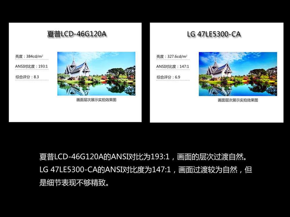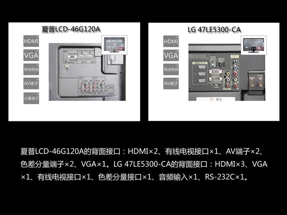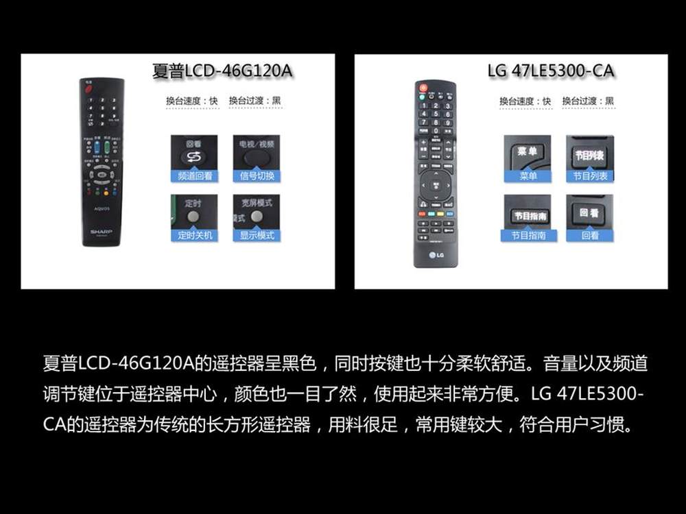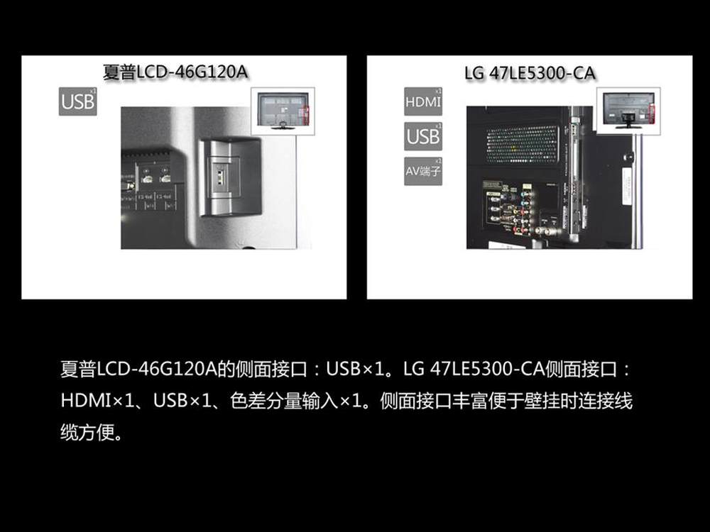目前在5千元左右价位可选的平板电视越来越多,而且在性能上都相差不多,到底要如何选择呢?是很多消费者都比较关注的问题,这里挑选了两款5千元左右价位的具有非常不错性价比的夏普LCD-46G120A和LG 47LE5300-CA进行对比PK,想可以对想在黄金周购买该价位平板电视的朋友带来帮助。2/14
