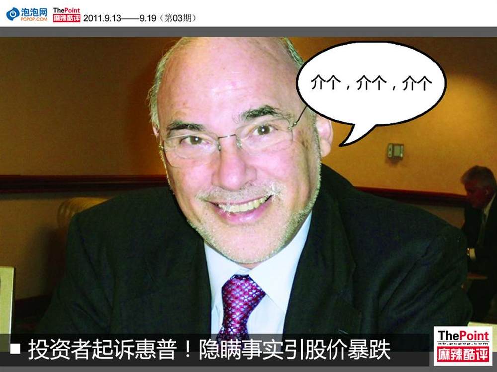 据国外媒体报道,由于在披露取消TouchPad平板电脑等重大决策前的时间里误导投资者,本周惠普遭到了一项集体诉讼,致使惠普股票价格出现大幅下跌。6/8